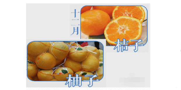 十二月份应季水果是 橘子、柚子,橘子味酸甜,有生津止咳的作用,开胃通经络,具有消除疲劳之作用。柚子性寒,微苦,有健胃化食的作用,对止咳化痰,清热败火有一定的疗效,对心血管、高血压,糖尿病有一定的辅助治疗作用。