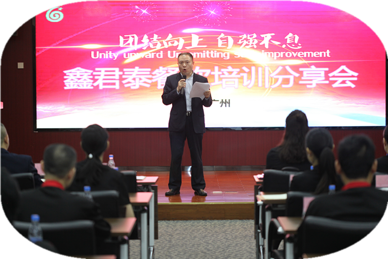 上图为广州鑫君泰餐饮管理服务有限公司总经理任文波致辞