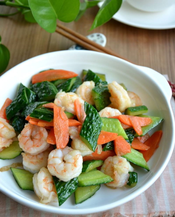 清炒黄瓜虾仁原料:黄瓜、虾仁。