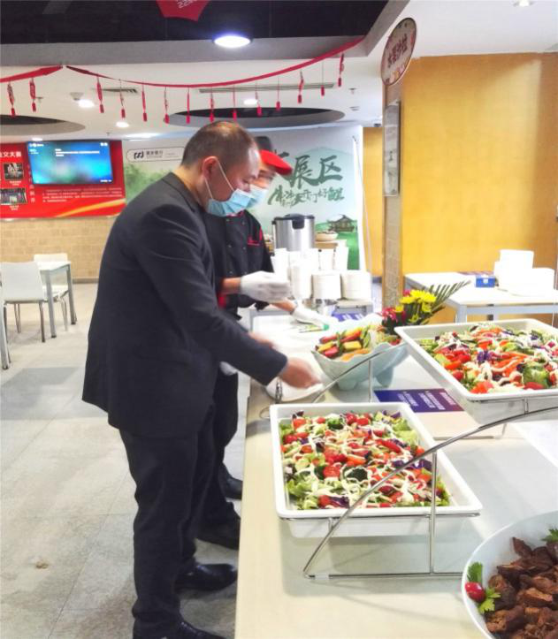 对这次活动,公司高度重视,总经理任文波召开专题会议做了工作部署。在征得客户对菜品的意见后,同行政总厨一起协商拟定菜谱,并对食材的质量、存放时间、进货渠道、菜肴和点心的制作时间等做了严格要求,争取做好这次活动。并在活动当日亲临现场指导,确保活动顺利举行。