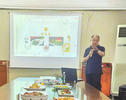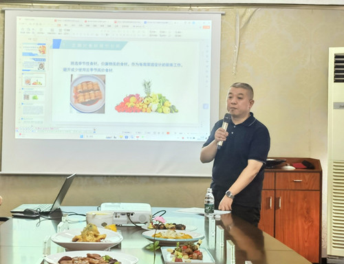 公司技术总监田爱兵对食材成本控制进行了培训。对食材价格分析、出货率分析、食材规格的选料、食材对应品质的选用及食材计划、加工、验收、储存等各个环节都详细进行了讲解。