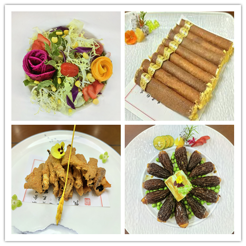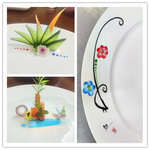 经过努力,全部展示作品在既定时间内完成,各种菜品也都纷纷装盘上桌,五彩缤纷的视觉冲击,让大家眼前一亮。