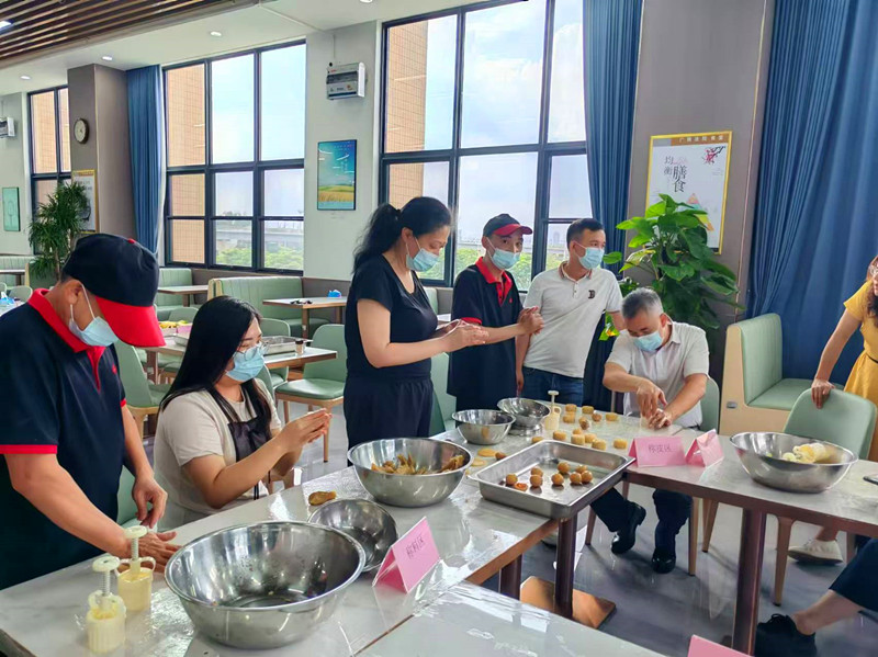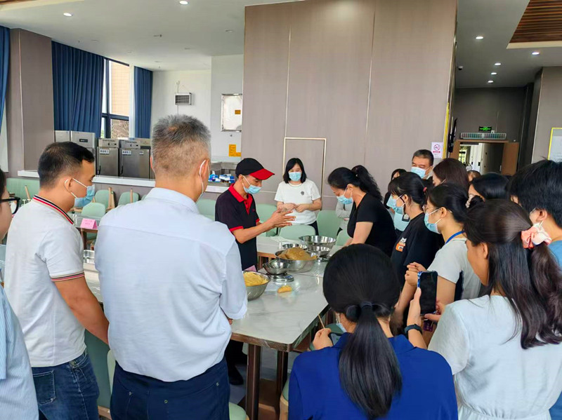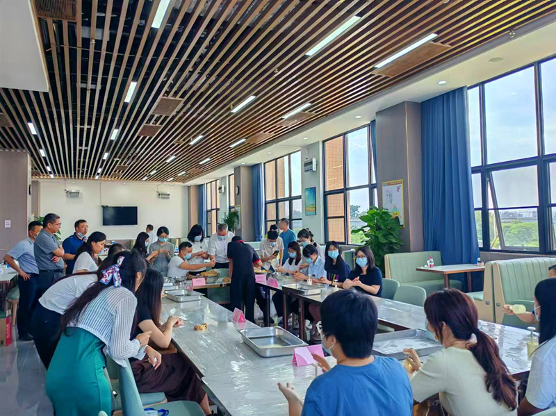 本次活动由我公司派经验丰富的厨师进行现场指导,吸引了客户单位的广大职工参与,参与职工认真倾听厨师的讲解,积极参与制作。在欢声笑语中,有的和面、搓面团,有的搓馅料,有的压模印,展现出极高的热情和学习能力。