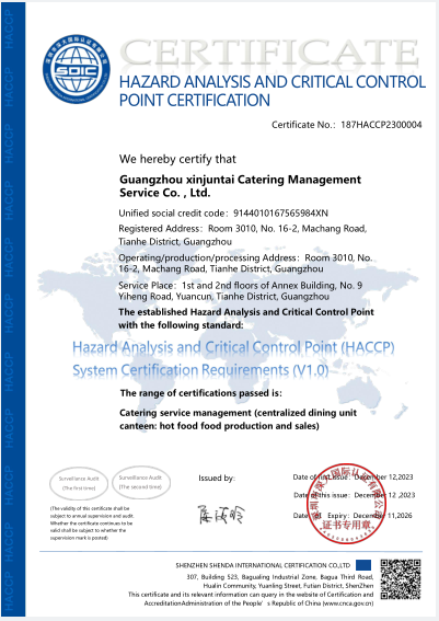 HACCP体系认证证书