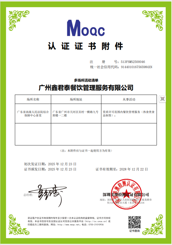食品安全管理体系认证证书2